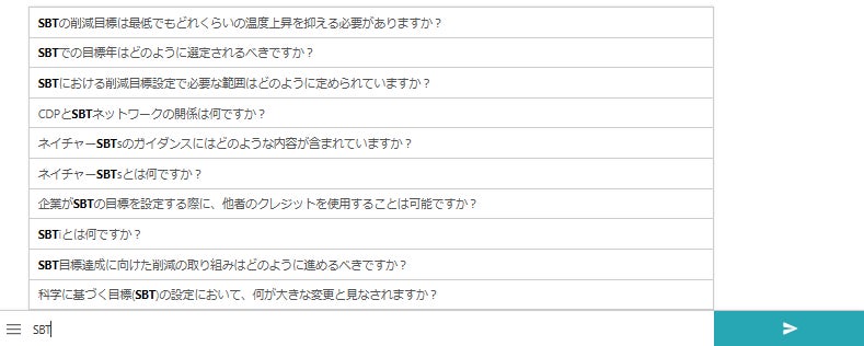 よくある質問項目、質問候補が提示されるため、企業はプロンプト作成の必要なく、専門的な情報の検索が可能