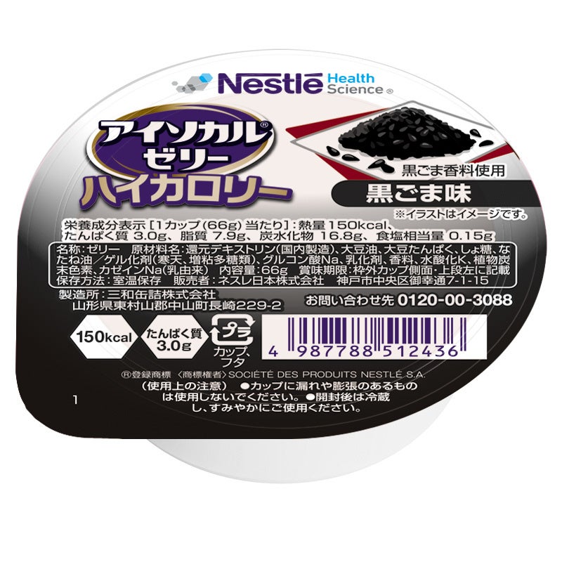 「アイソカル ゼリー ハイカロリー 黒ごま味」、「同 プリン味」
