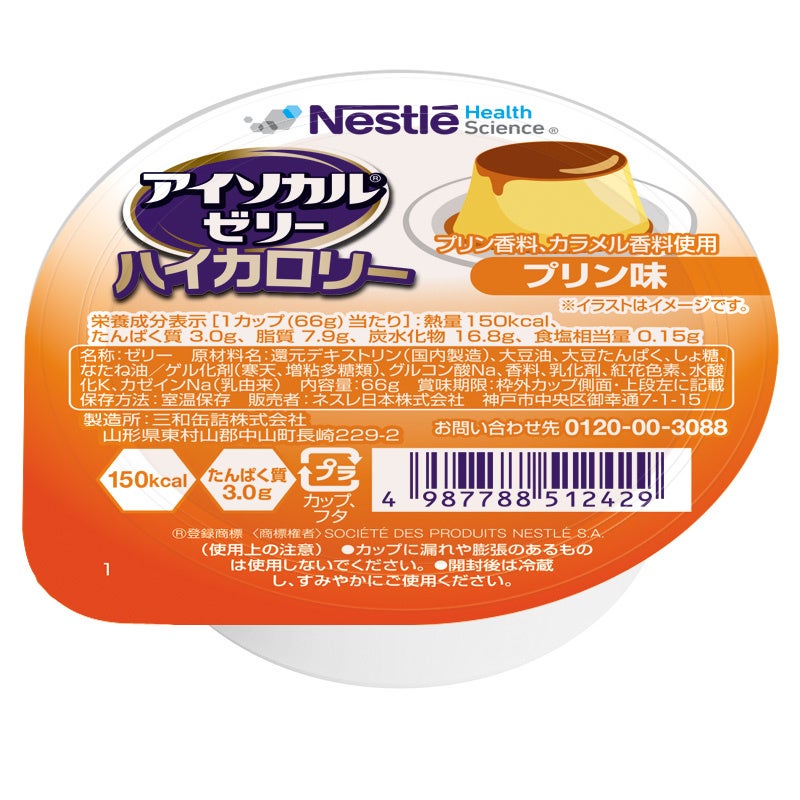 手のひらサイズの1カップ66gに、しっかり150kcal 、たんぱく質3g「アイソカル ゼリー ハイカロリー」