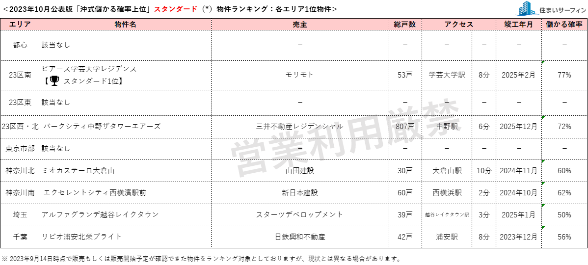 10月公表分は、2023年9月14日時点で販売もしくは販売予定が確認できた物件を対象としています。