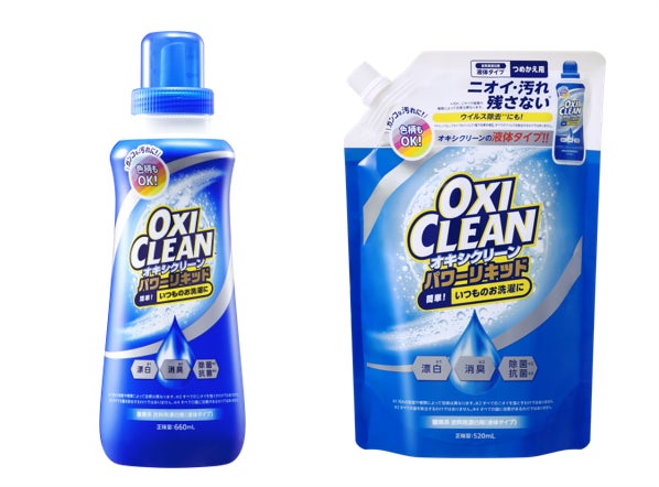 酸素の力で汚れを落とす、オキシクリーンの液体タイプです。液体だから溶かす手間なく、毎日のお洗濯を、ニオイ・汚れを残さない6つのパワーでさらに進化しました。おしゃれ着や色柄もののお洗濯にもお使いいただけます。※