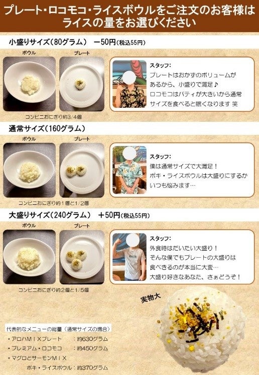 ①ライス量選択の必須化+メニュー表に量を表示することによる量の可視化