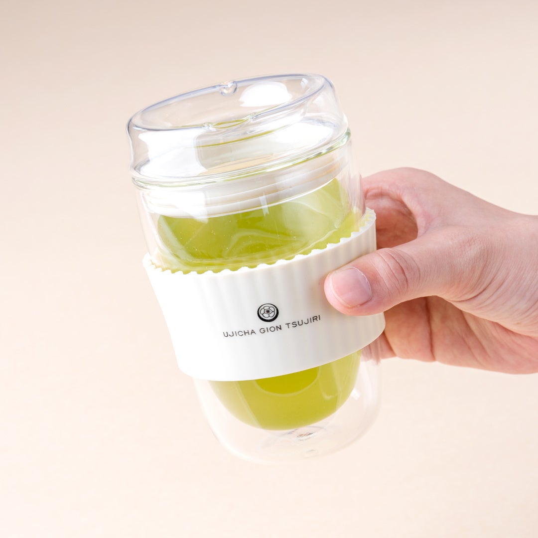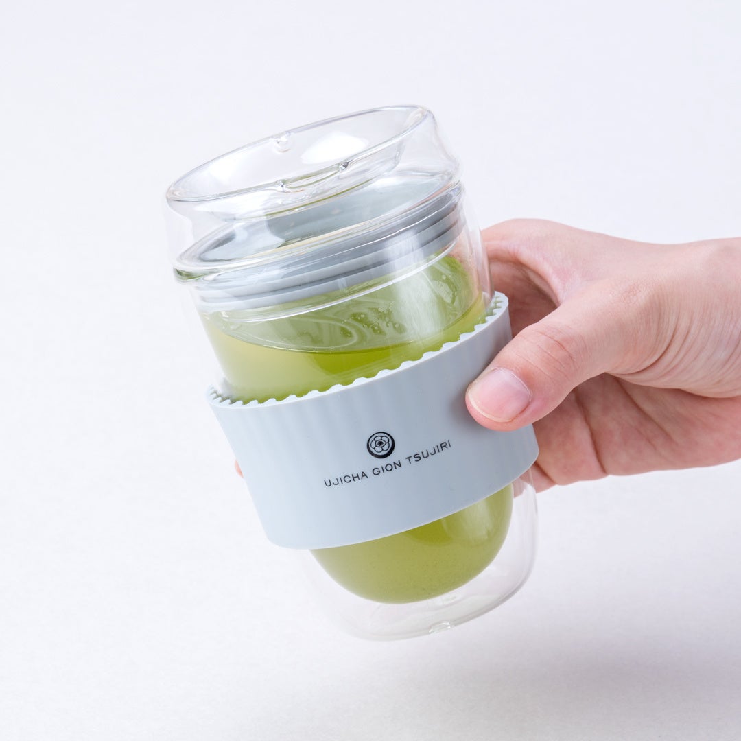 さらには、バックのお色味に合わせて、愛らしい見た目で気分もあがる祇園辻利オリジナルの「ガラスタンブラー」も付いています。二重ガラス構造なので、熱いものを入れても温かさが長持ちし、冷たいものを入れても結露しにくく、デスクでも安心して宇治茶をお楽しみいただけます。