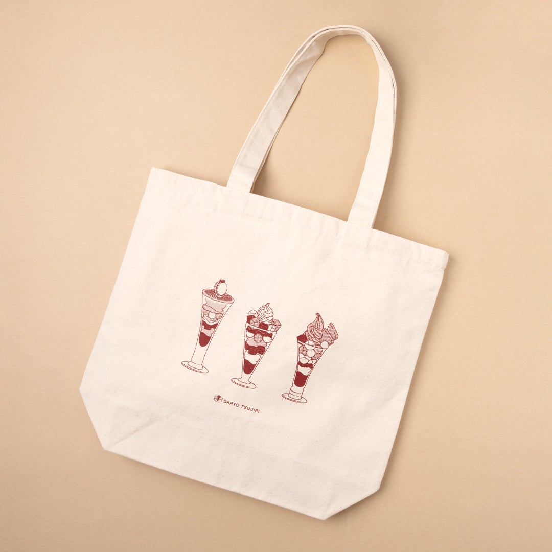 つきましては今年だけのデザインとして、ベージュタイプでは、各店舗ごとでしか提供していない「特製パフェ」のイラストが集結したトートバックも登場いたします。ランダムにセットされていますので、どのデザインがお手元に届くかは、福袋を開けてからのお楽しみ!