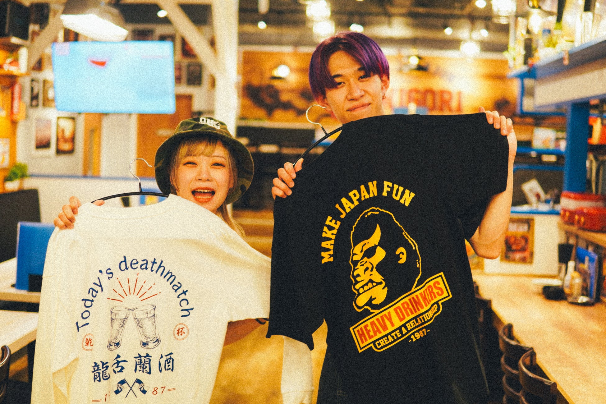 居酒屋としての枠を超え、学生時代を思い出す「チームTシャツ」のノリでアパレル活動も行います。同じ場所に集えば仲間、つながりをいつも感じられるように、街の名前も交えた多様なグッズを展開します。