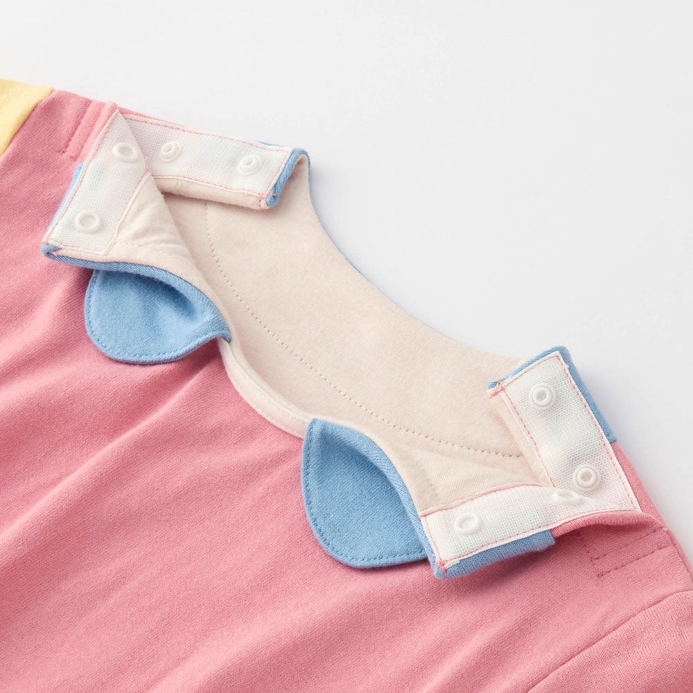 ・着替えやすいように両肩スナップボタン留めを採用しています。