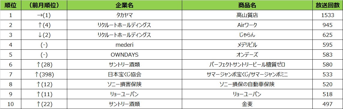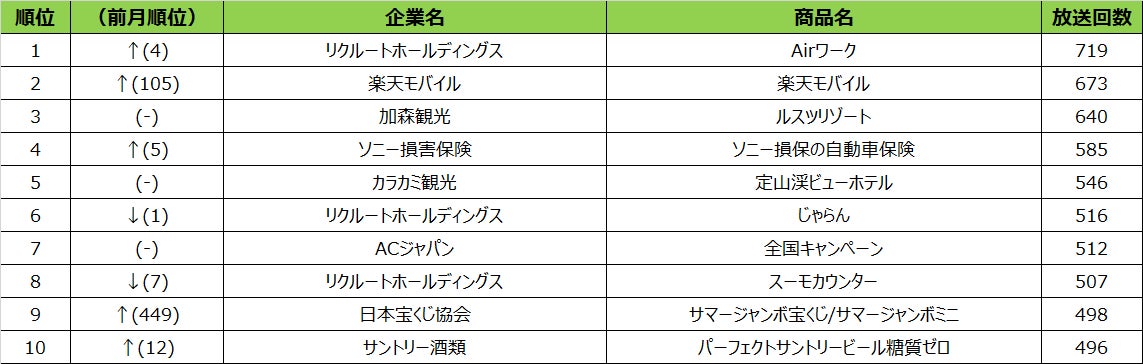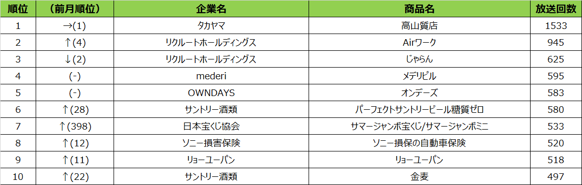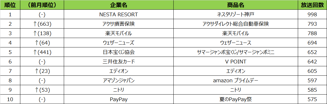 2022年7月度テレビCM放送回数ランキング発表~夏休みに合わせたサービスが上位3位を占める結果に~