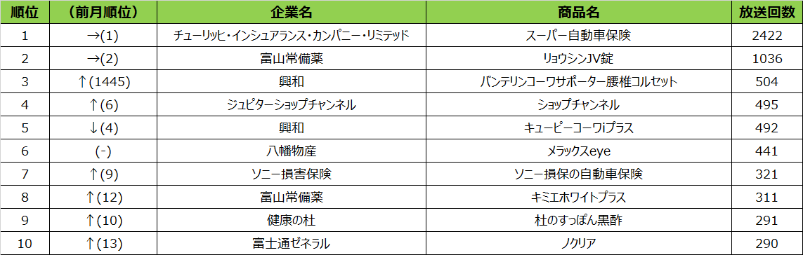 *2022年6月度テレビCM放送回数ランキング発表(2022年7月14日)