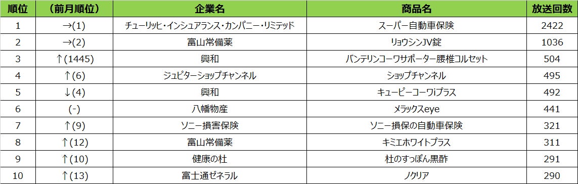 - 2022年7月度 商品別テレビCM放送回数(全国地上波25局、BS放送6局合計)