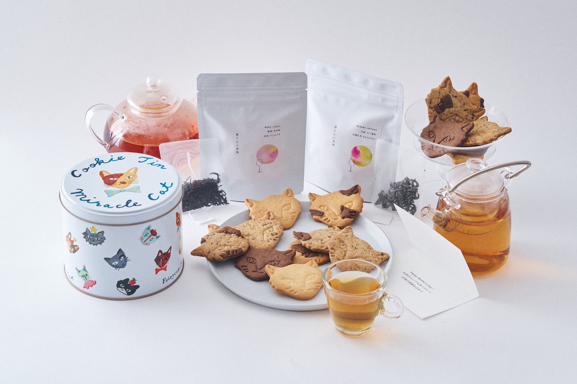 「神様のいたずら」と呼ばれる珍しい模様や不思議な柄のネコたちを主役にした、発酵バターやチョコチップなど全5種類の手づくりクッキーに、桃を連想させるフルーティーな香りが特徴の「国産紅茶 べにふうき」と、ブーケのような花の香りでみずみずしさが特徴の「国産紅茶 みなみさやか」の紅茶2種を合わせました。お気に入りのネコを見つけながら、淹れたての香り高い紅茶でほっとひと息。お母さんへ心和む時間を贈ります。