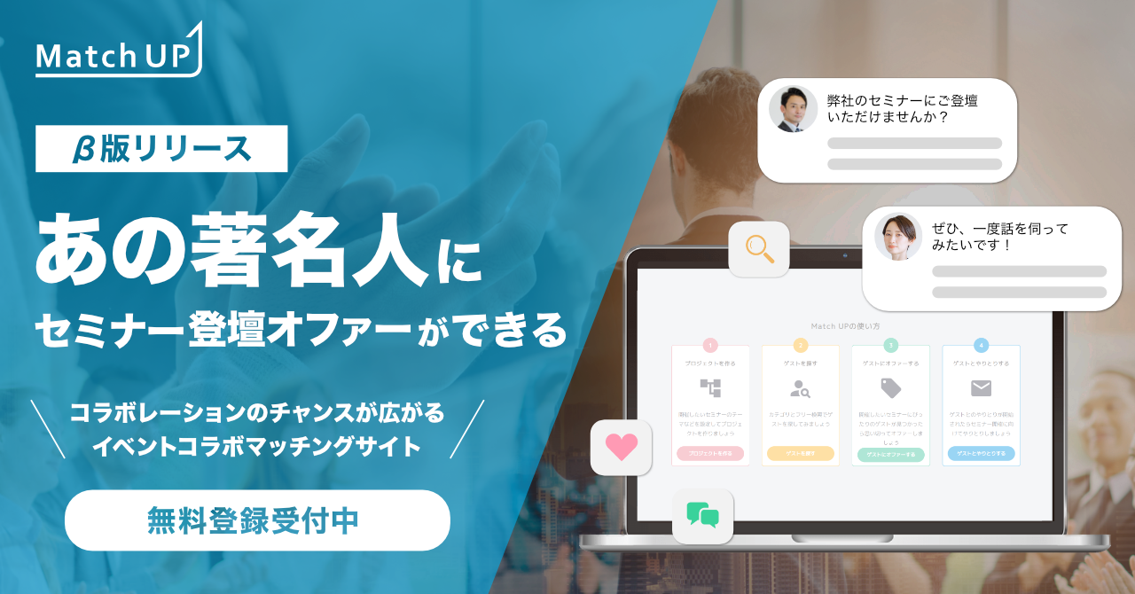 脱・マンネリセミナー!業界著名人にセミナー登壇オファーができる「Match UP」をリリース