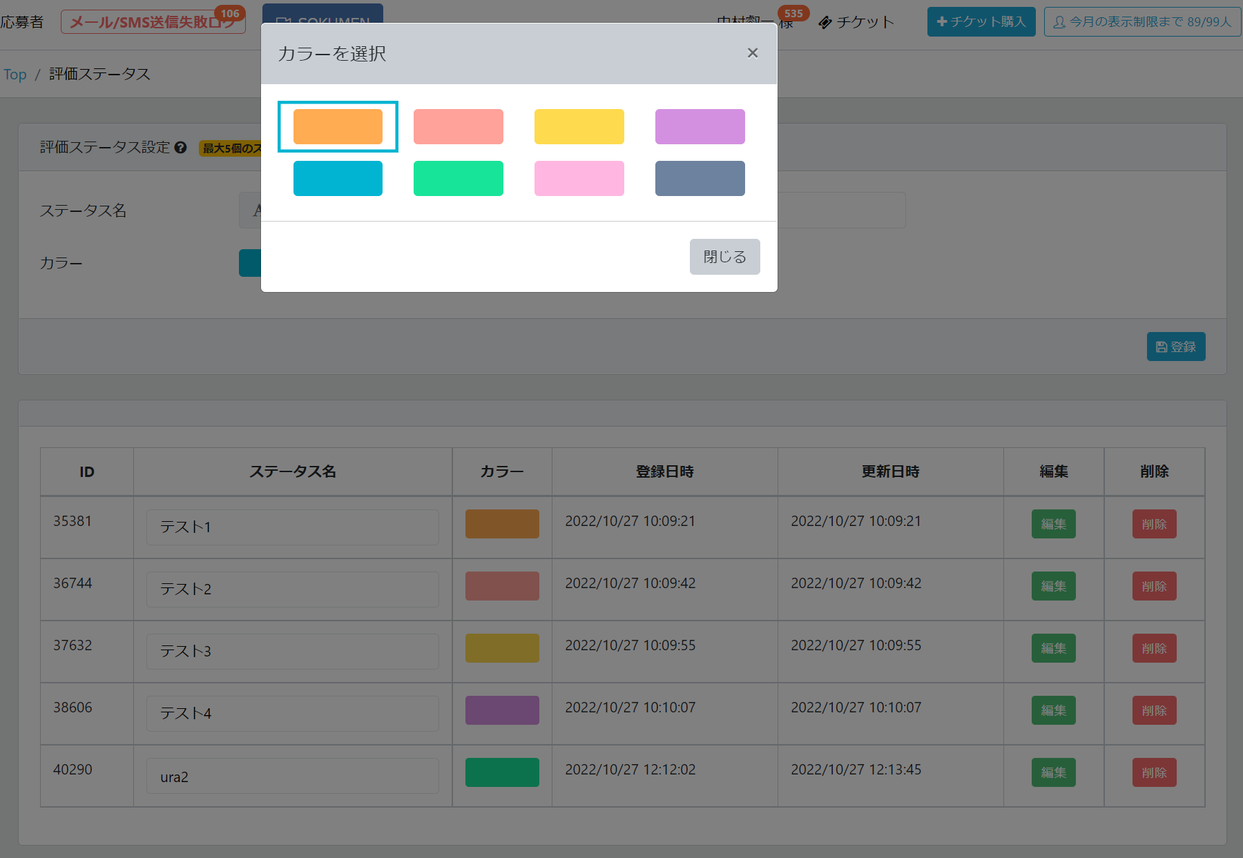 派遣応募者の取りこぼしを防ぐ!録画面接ツールITSUMEN(イツメン)、評価ステータスのカスタム作成時に8色から選択出来る様になりました。