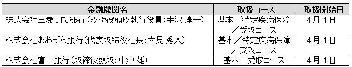 本日から、以下の金融機関にてお取扱いを開始いたします。