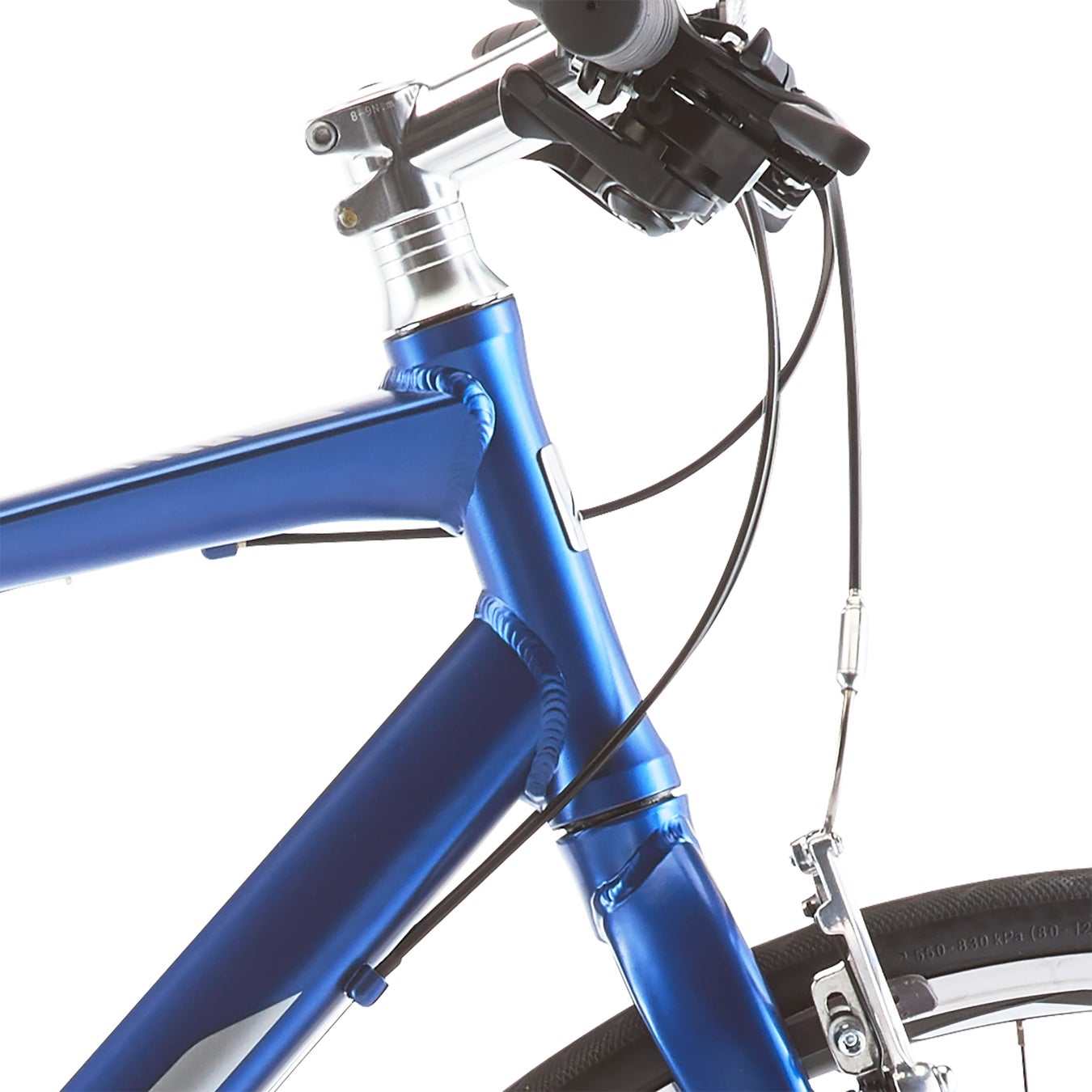 車体にはアルミ素材のフレームとフロントフォークを採用しているほか、細部にまで軽量パーツを採用しており、エントリークラスのクロスバイクでありながら車体重量は11.4㎏(470mmサイズ/サイドスタンド含む)と非常に軽量で、軽い漕ぎ出しとスポーティな走りをお楽しみいただけます。また、ハンドルのポジションが高くなるようにフレームを設計することで、スポーツサイクルにありがちな前傾姿勢にならず、楽な姿勢で乗車することができます。
