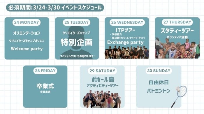 ・日程:3月24日(月)〜3/30(日)の期間は参加必須
