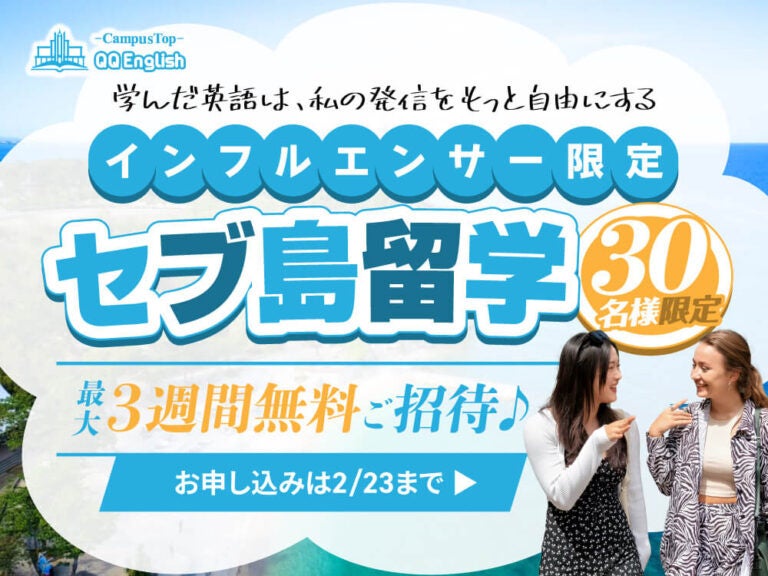 この春、フォロワー1万人以上のインフルエンサー限定で「QQEnglish クリエイターズキャンプ 2025」開催!特別ゲストも参加決定。セブ島留学で英語を学び、現地ならではの体験を発信しませんか?