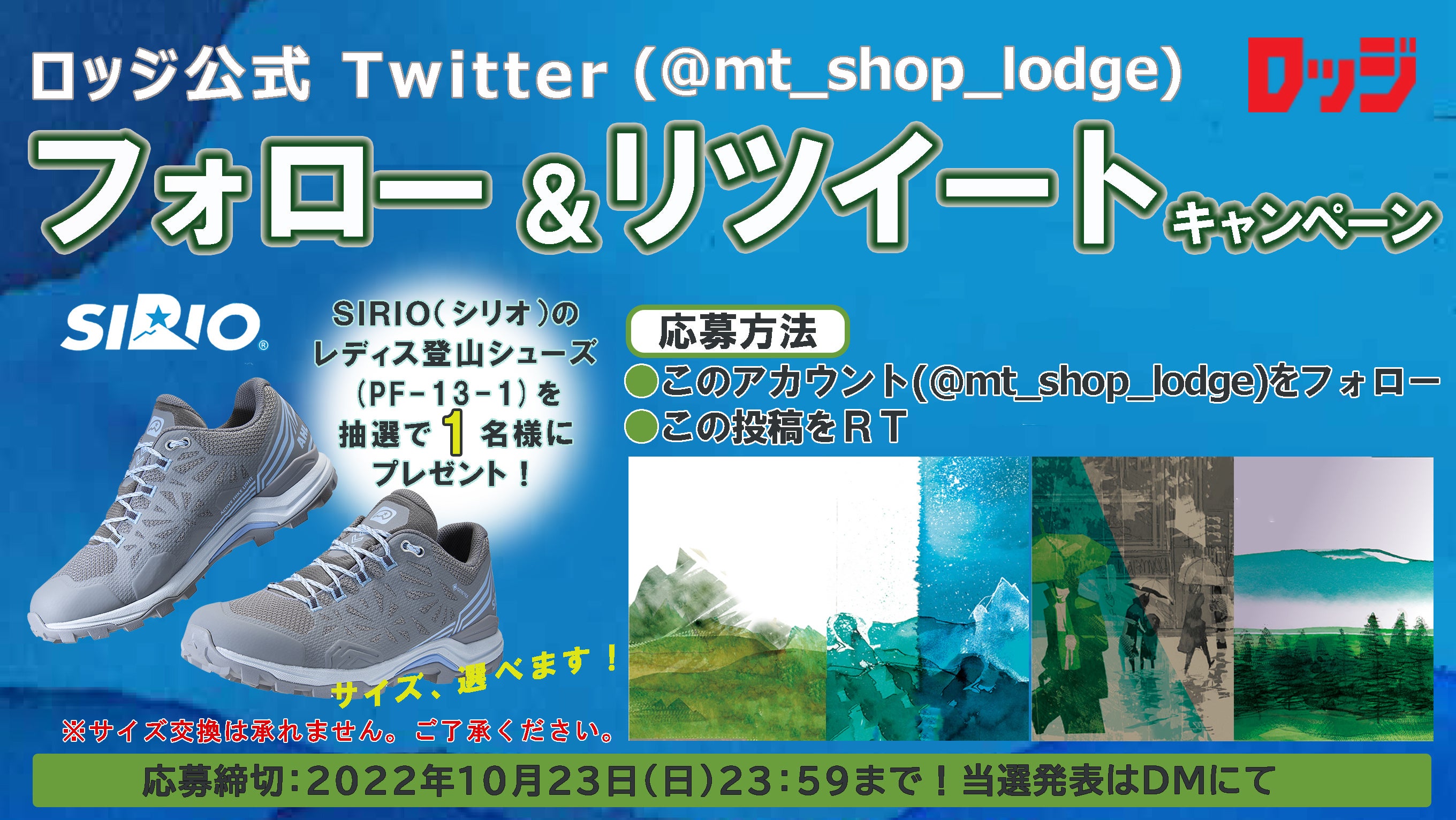 「登山・アウトドア用品専門店 ロッジ大阪店」公式Twitter フォロー&リツイートキャンペーン開催中︕