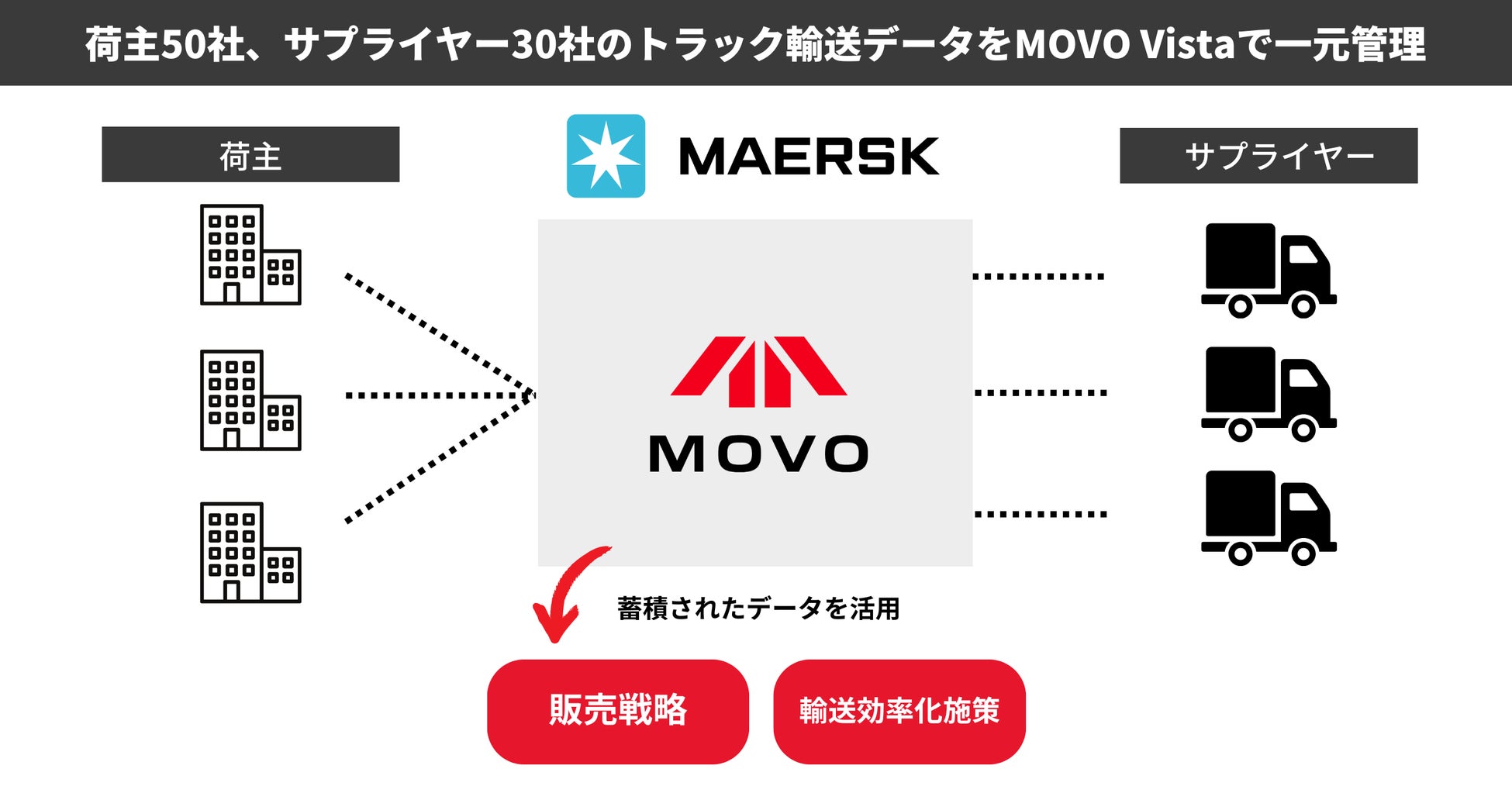 データの力で物流課題を解決する株式会社Hacobu(ハコブ、本社:東京都港区、代表取締役社長CEO 佐々木 太郎、以下「Hacobu」)は、世界最大級の海運物流企業A.P. モラー・マースク(以下「マースク」)が、配車受発注・管理サービス「MOVO Vista(ムーボ・ヴィスタ)」を導入して、荷主50社・サプライヤー30社の海上コンテナのトラック輸送(以下トラック輸送)データを一元的に管理することに成功し、輸送効率を大幅改善した事例記事を公開しましたのでお知らせいたします。