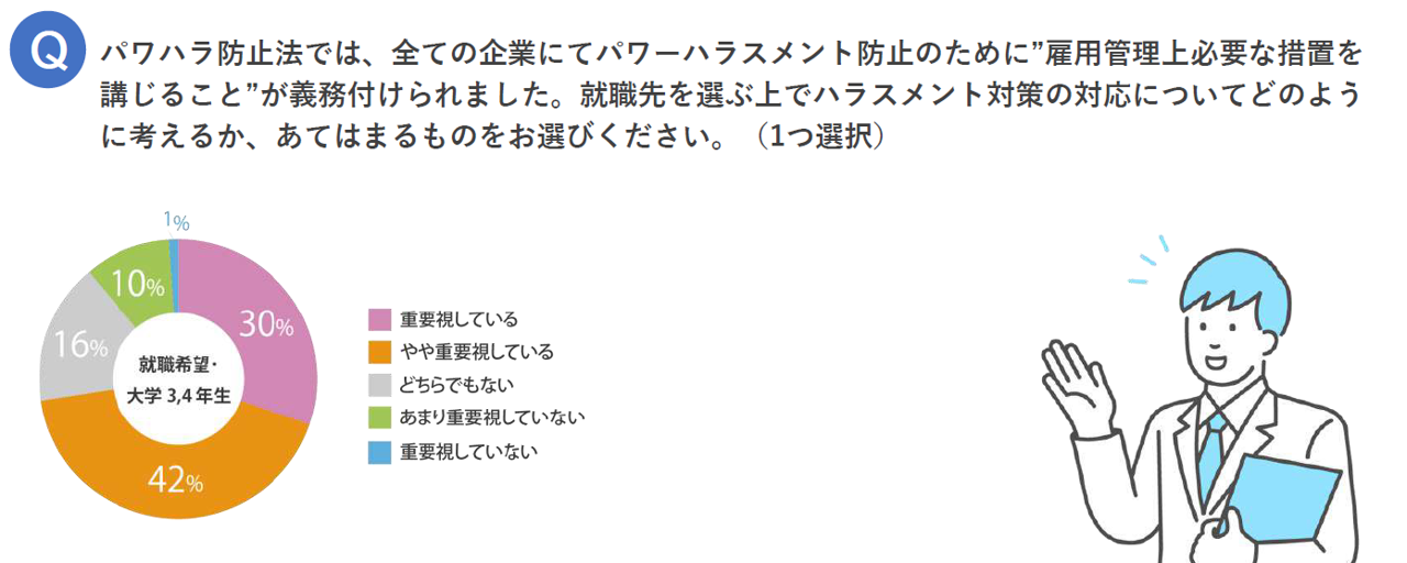 大学生の7割以上が就職企業にパワハラ対策を望んでいる。