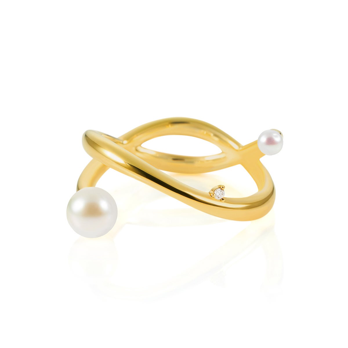 ひとつとして同じ形のないバロックパールを施したネックレスやピアスは、動くたびに地金とバロックパールが揺れ動く目を惹くアイテム。波を打つようなひねりの地金のラインの先にパールをセッティングすることで、指の間からサイズ違いのパールがのぞく大人のかわいらしさを秘めたリングも登場。さりげないダイヤモンドの輝きも、指元に繊細で上品なアクセントを添えます。