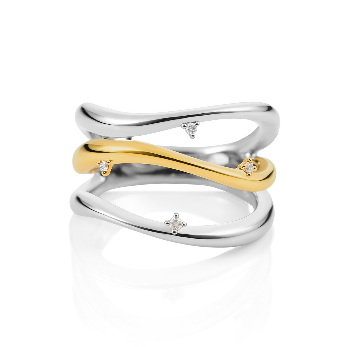 大胆な地金のラインと動きのあるストーンのセッティングが主役級の存在感を放つコレクション。あらゆる環境にも馴染んで姿を変える“水”に着想を得たジュエリーが、明日のあなたのどんな一歩にも寄り添い続けることを願って。