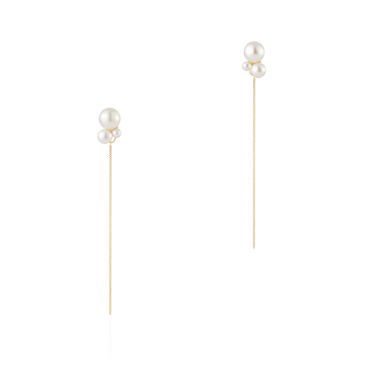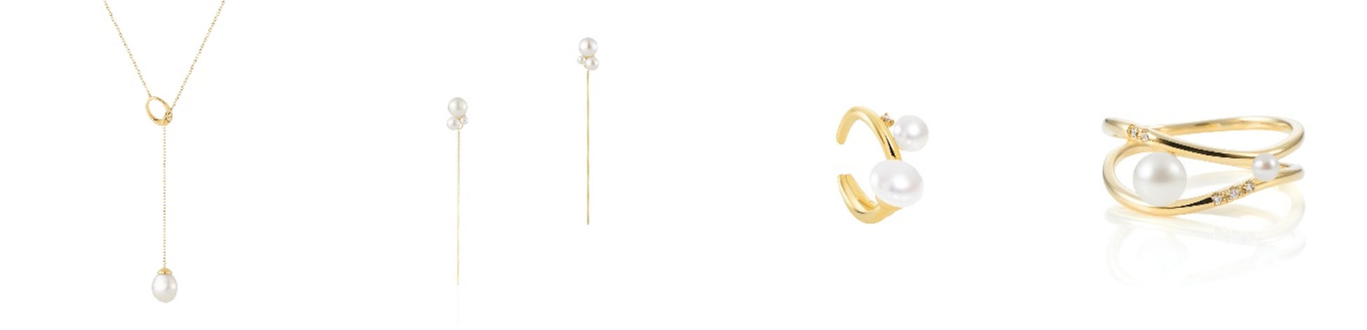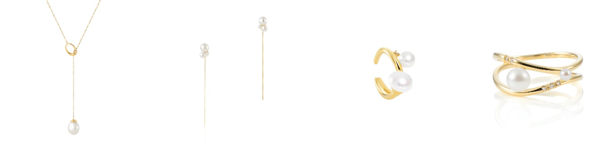 水の中に沸き立ち自在にたゆたうバブルをイメージしたシリーズも登場。バロックパールが揺れるラリエット風のY字ネックレスや大小のパールと軽やかに揺れ動くチェーンが可憐な印象のピアス、耳元からパールが愛らしく覗くイヤーカフ、さらにはしなやかな2本の地金に留まるパールとダイヤモンドがしなやかな大人の印象を与えるリングまで。カジュアルにもフォーマルにも、軽やかに纏える上品なアイテムです。