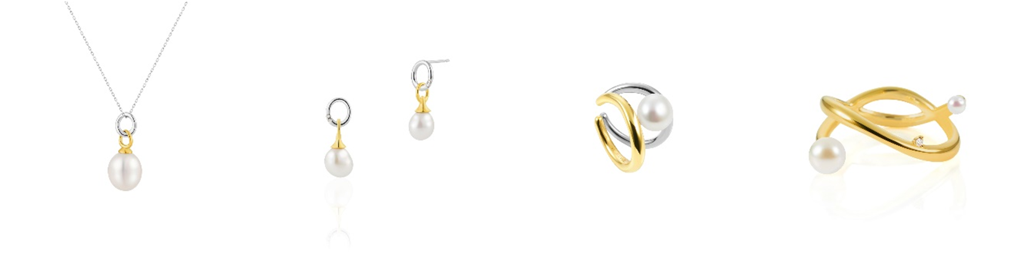 今回の新作は、コンビカラーにダイヤモンドやパールの輝きを留めた上品で存在感のあるシリーズ。水の躍動感を宿した抑揚のあるデザインが魅力のネックレスや、揺れるバロックパールが顔周りを優雅に映すピアス、泡をイメージしたパールとダイヤモンドのピュアな煌めきを添えたリングなどをご用意しました。上品でたおやかなデザインで存在感を放つジュエリーが、身に着ける人の可憐で澄んだ魅力をより引き出します。