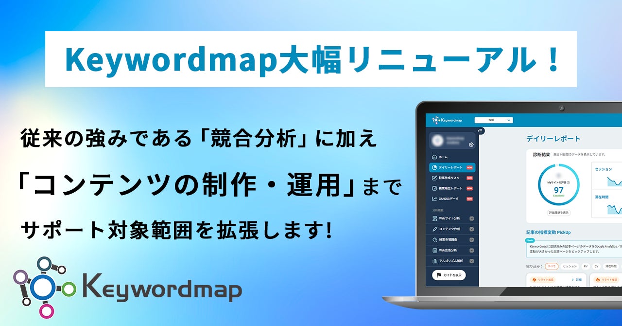 Keywordmapは2016年のリリース時より、豊富なデータ量と多様な分析機能を強みとして、SEOに関する知識や経験が豊富なユーザーを主要な利用層としてサービスを提供してまいりました。 しかし、SEOツール市場の成熟が進み、SEOが一般的なマーケティング施策となっていくにつれて、初心者から上級者まで、幅広いユーザーに対応したサービス提供が求められるようになりました。Keywordmapにおいては、これまでに、UIが初心者にはわかりにくい、機能が豊富であるがゆえに使用すべき機能、組み合わせがわかりにくいなどの声が寄せられています。そこで、こうしたユーザーの声やフィードバックをもとに、11月に大幅リニューアルを行うことを決定いたしました。