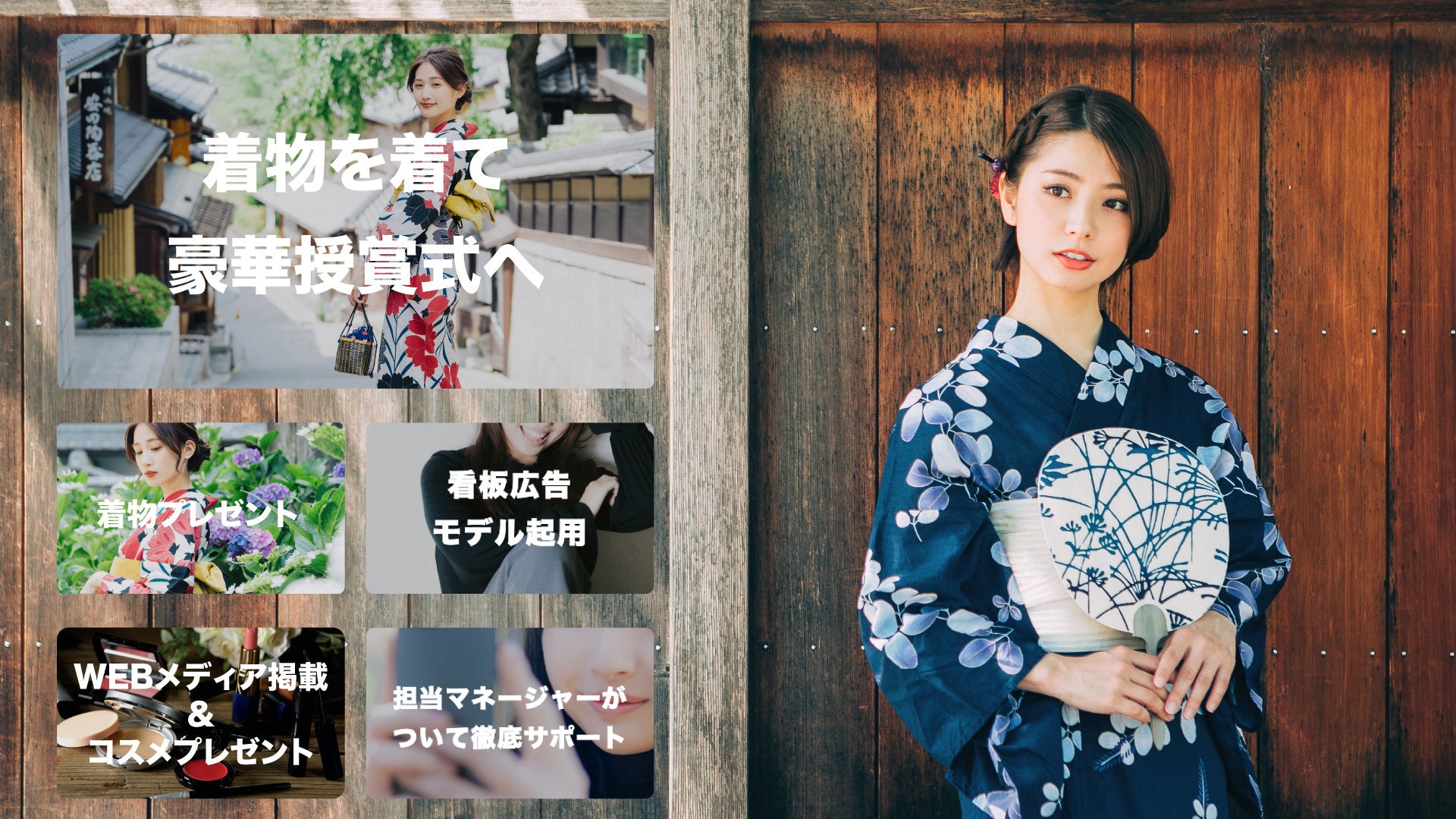 受賞者には着物の贈呈、豪華授賞式への参加、着物小物の贈呈、日本橋エリアのビジョン広告への掲載などの特典を多数予定しています。