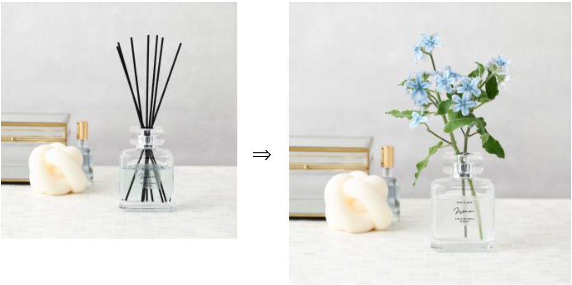 香りを楽しんだあとは、見て楽しむ。フレグランスボトルを一輪挿しとして使うアイデア