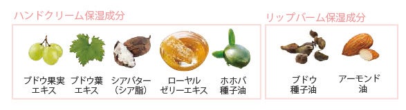 ワセリンベースの保湿リップバームはセット限定品。唇にうるおいを与え、なめらかに仕上げます。華やかで甘酸っぱい“ロゼワイン”の香り