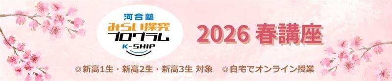 学校法人河合塾は、2026年2月から3月にかけて、全国の新高1~3生を対象に、「みらい探究プログラム K-SHIP」をオンラインで開催します。新年度を迎えるこの春は、英語・数学・現代文の教科講座をはじめ、中高生が学問への興味・関心を広げ、深めることができる11講座をご提供します。