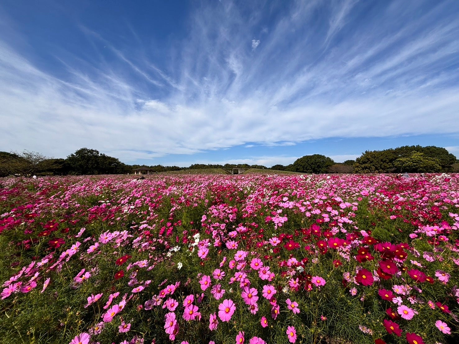 フォトスポットにもおすすめ!100万本のコスモスが見頃を迎えました。
