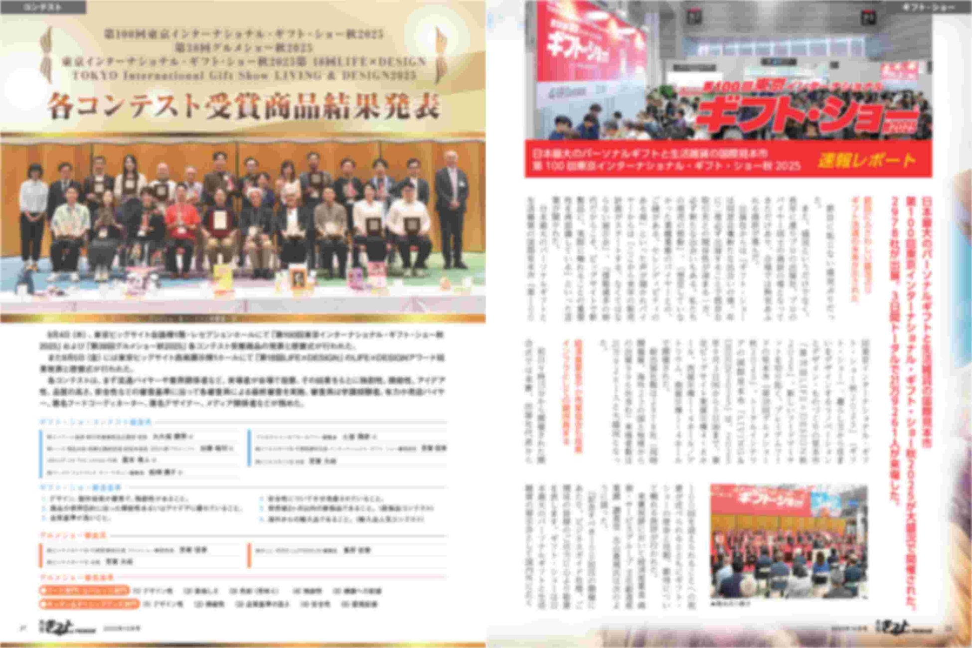 9月3日~5日に開催された「第100回東京インターナショナル・ギフト・ショー秋2025」および同時開催展の詳細レポート。注目の出展社やコンテスト受賞企業・商品の紹介、ビジネスマッチング参加バイヤーの声などを掲載しているほか、同時開催展「第38回グルメショー秋2025」の模様を詳しくお届けします。