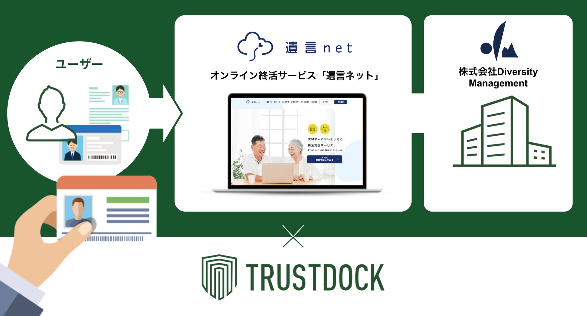 Diversity Managementは、TRUSTDOCKが提供するeKYC本人確認サービスにより、「遺言ネット」の本人確認業務をスムーズに行なうことが可能となります。これにより、証明書提出者などあらかじめユーザーが指定した大切な人に安心・安全に情報を届けることが可能になります。