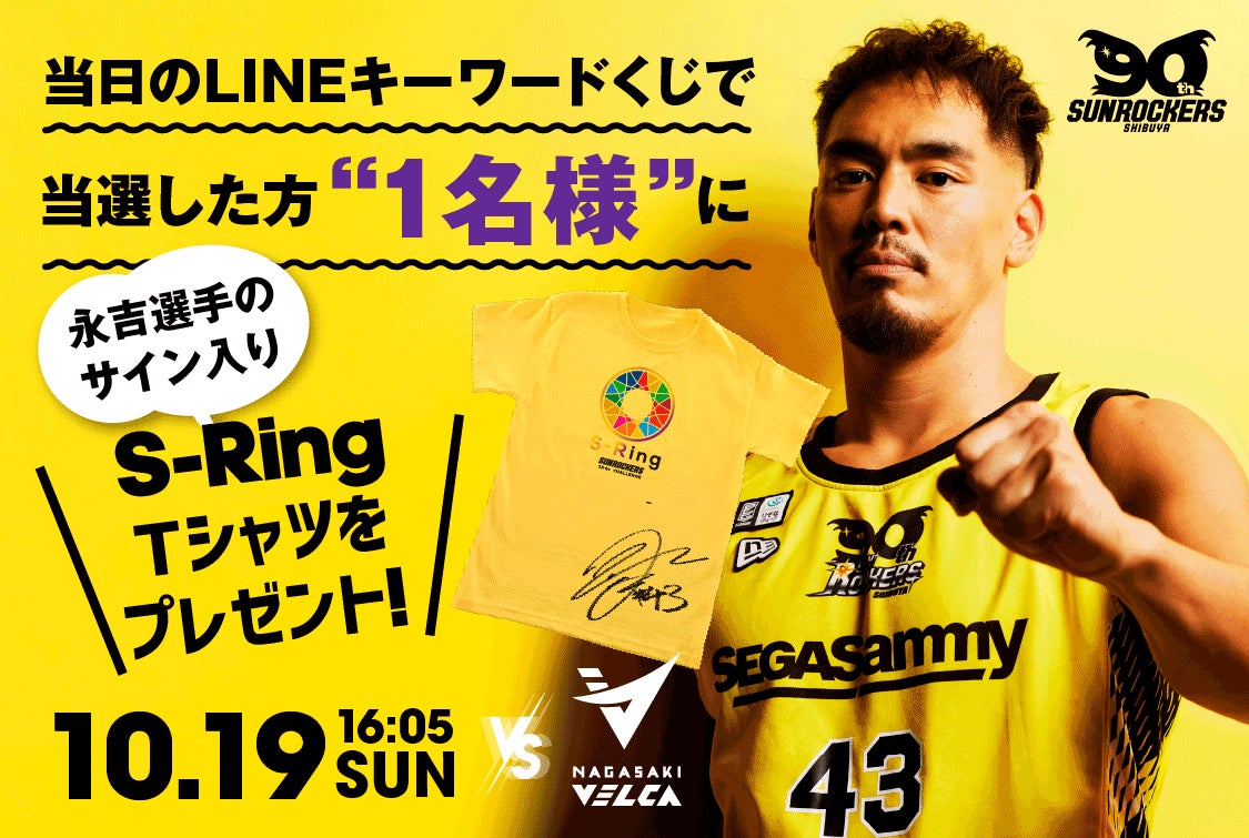 これを記念し、10月19日(日)開催の長崎ヴェルカ戦では、S-Ring活動を中心に稼働する社用車「サンロッカーズ号」を展示するとともに、永吉選手のサイン入りS-Ring Tシャツが当たる抽選会を実施いたします。