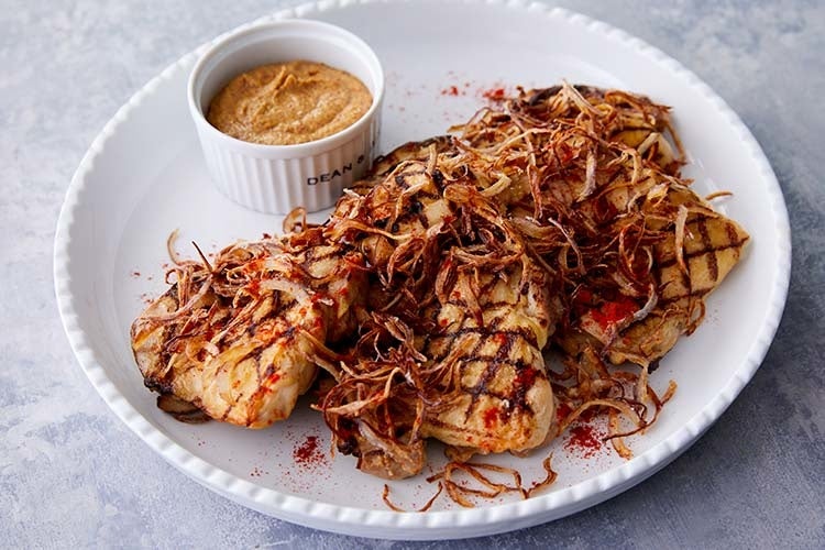 グリルしたチキンに、スライスして揚げたアーリーレッドを合わせ、メープルマスタードソースをかけてたのしむバターミルクチキン。チキンは、スパイスを加えたバターミルクに一晩じっくり漬け込み、中はしっとり柔らかく、外は香ばしく焼き上げました。