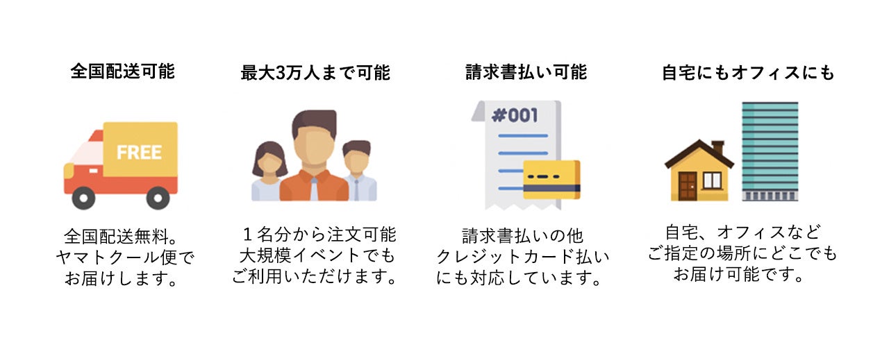 2020年8月より開始した本サービスは、累計利用実績5,000社90万人と多くの企業様に利用いただいており、懇親会用の食事や飲み物の手配が手軽にできると喜ばれています。