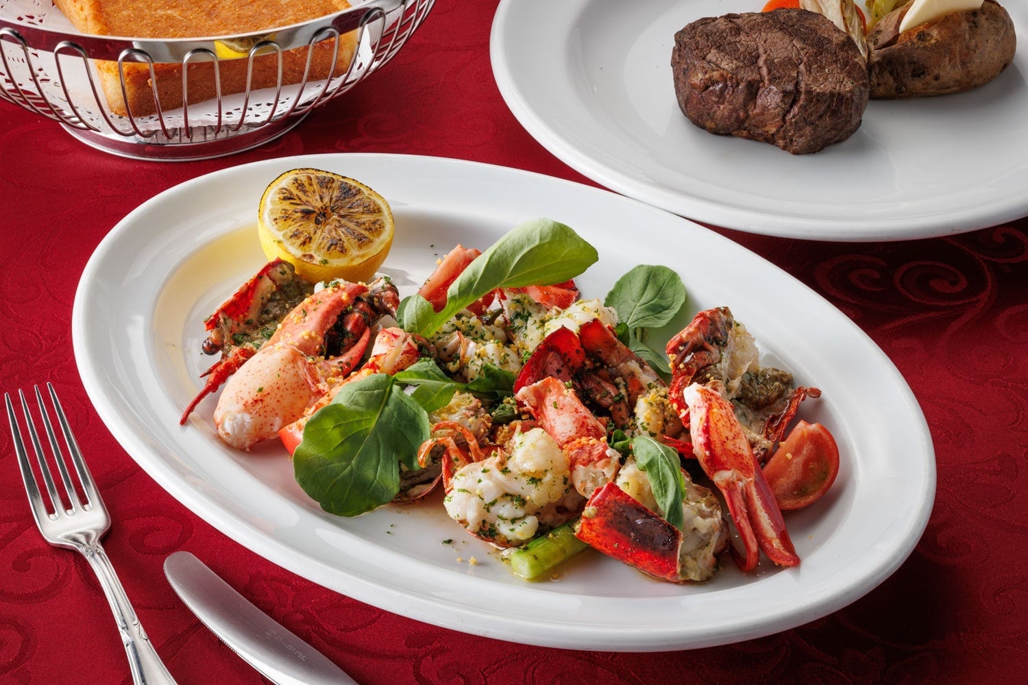 AKARENGA STEAK HOUSE自慢のUSDAプライムビーフステーキと、ハワイの定番グルメであるガーリックシュリンプを大きなロブスターで豪快に再現!