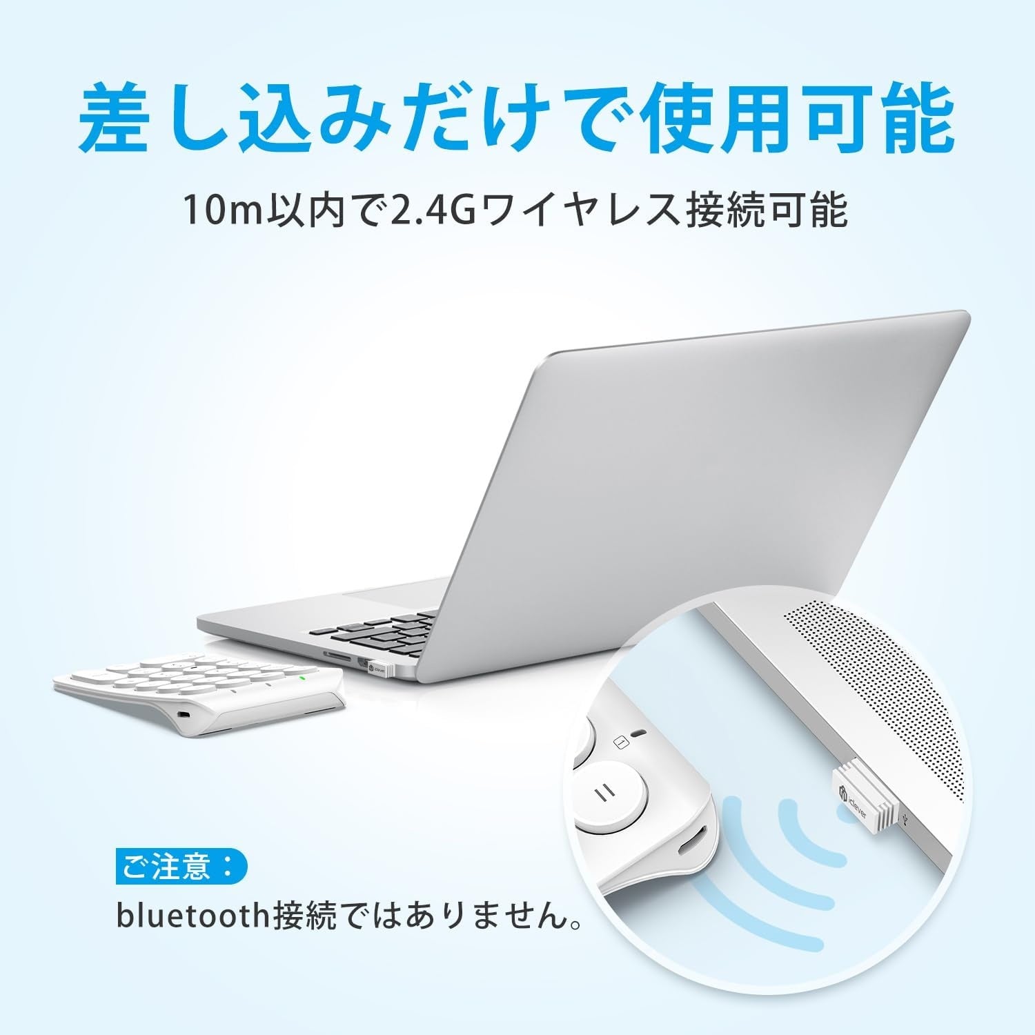 USBレシーバーを接続先デバイスに差し込むと瞬時に接続されます。Bluetooth接続のような初期設定も不要です。