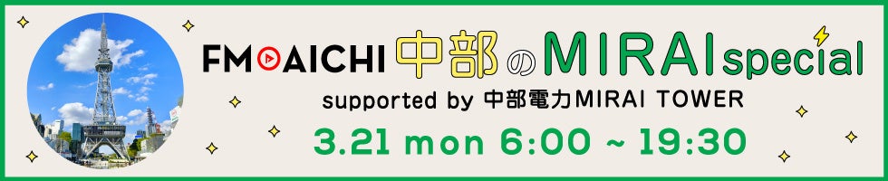 3月21日(月・祝) みんなで中部のMIRAIを考えよう「FM AICHI 中部のMIRAI special supported by 中部電力MIRAI TOWER」