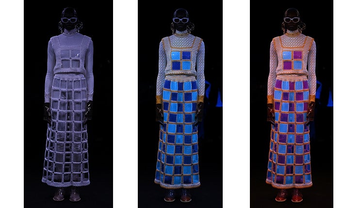 本コレクションにおいて、アンリアレイジ、当社グループ会社でエンタメテック分野に特化した事業を展開する株式会社IMAGICA EEX(イマジカ イークス、本社:東京都港区、代表取締役社長CEO兼CCO:諸石治之、以下「EEX」)及びNTTが連携し、素材と照明の両方の効果で、服の色が次々と変化する演出を発表しました。これによりファッションショーを通じて、ありのままの情報を伝えることで普段我々が見ている世界が1つだけではないという「環世界」の世界観を実験的に表現しています。