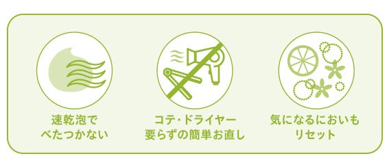 ヘアゴムや帽子のあとがついた髪に手ぐしでもみ込むだけで瞬間リセット。