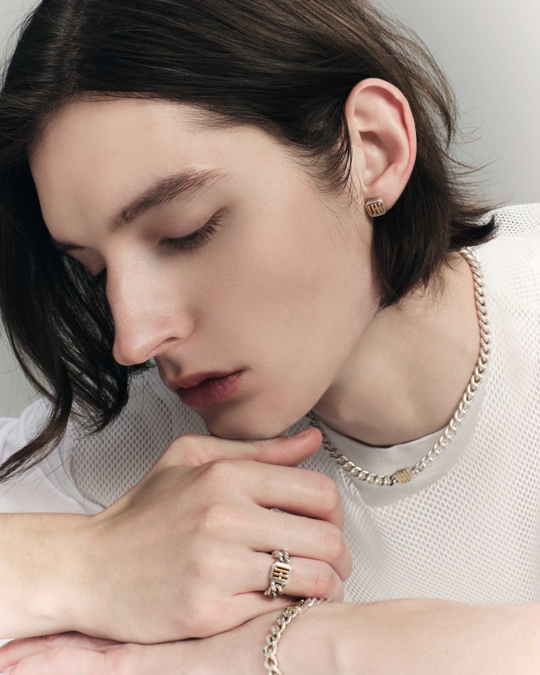 チャンキーなシルバーに、エッジを効かせたゴールドのロゴ使いがスタイリッシュなシリーズ「シグネット」が新登場。シグネットとは印鑑、捺印の意味を持つ言葉。印章や紋章を刻まれたシグネットリングが有名で、古くはハンコの代わりにも使われた、伝統的なジュエリーをモチーフにしています。
