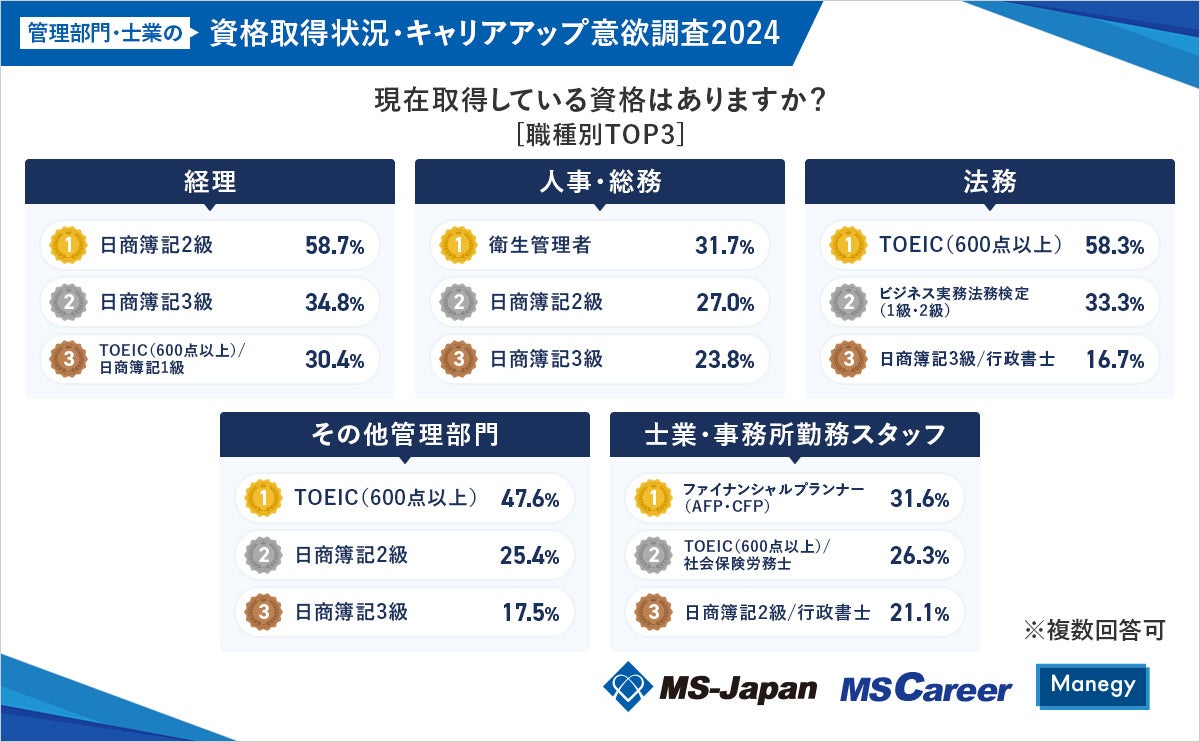 「管理部門・士業の「資格取得状況・キャリアアップ意欲」調査2024」