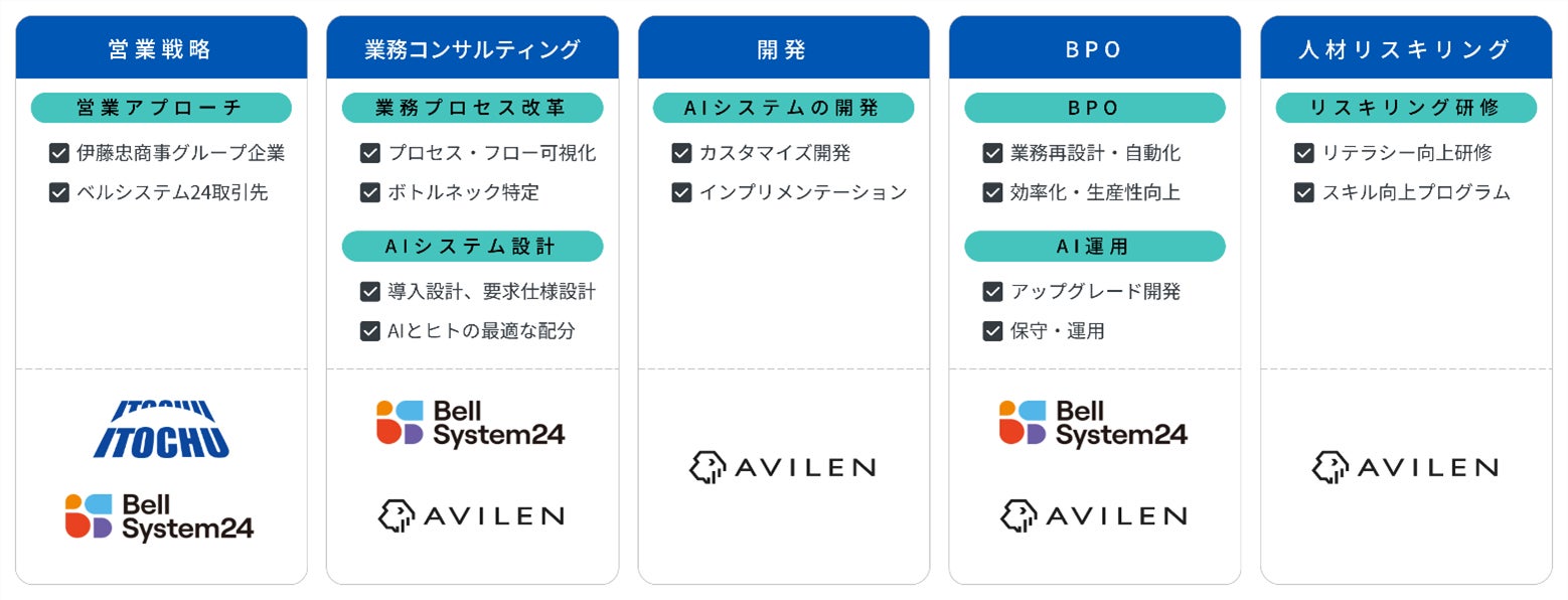 AVILEN、ベルシステム24・伊藤忠商事とAIエージェント共創支援に関する業務提携契約を締結