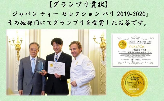 - 「Japanese TEA Selection Paris」 金賞及び在仏日本大使特別賞のダブル受賞。フランス人も認めた繊細な香りの「紫にほふ 釜炒り製緑茶」。