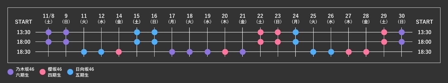 2025年11月8日(土)~11月30日(日)の期間にて、乃木坂46 六期生、櫻坂46 四期生、日向坂46 五期生が、各グループ10公演ずつのワンマンライブを実施いたします。