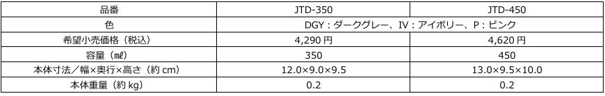 『真空断熱マグカップ(JTD‐350/450)』 仕様一覧
