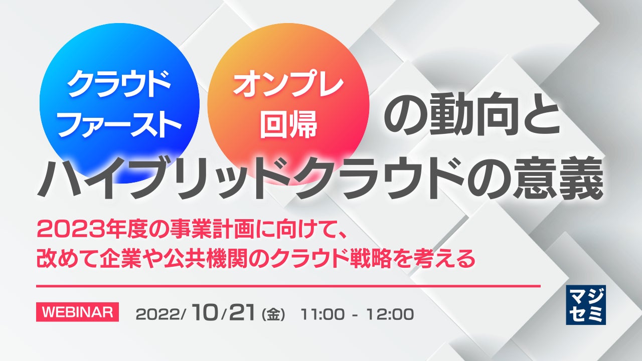 マジセミ株式会社はオンプレ回帰、クラウドファースト、の動向というテーマのウェビナーを開催します。